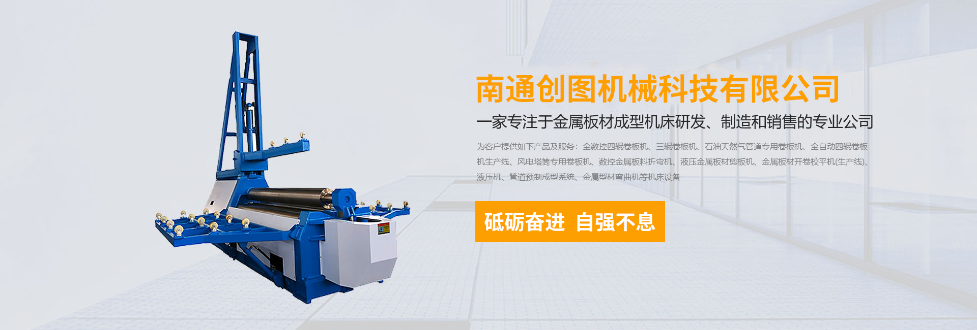 數(shù)控折彎機,剪板機,刨槽機,全數(shù)控四輥卷板機、三輥卷板機、石油天然氣管道專用卷板機、全自動四輥卷板機生產(chǎn)線、風(fēng)電塔筒專用卷板機、金屬板材開卷校平機(生產(chǎn)線)、液壓機、管道預(yù)制成型系統(tǒng)、金屬型材彎曲機等機床設(shè)備,公司以精湛的設(shè)計能力,雄厚的加工制造能力,完善的售后服務(wù)能力,產(chǎn)品暢銷國內(nèi)20多個省、直轄市,并遠銷德國、阿根廷、俄羅斯、印尼、伊朗等30多個國家和地區(qū)。